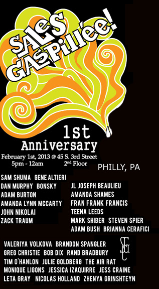 group exhibit featuring work by all the artists whose work has been featured in past Sales Gaspi